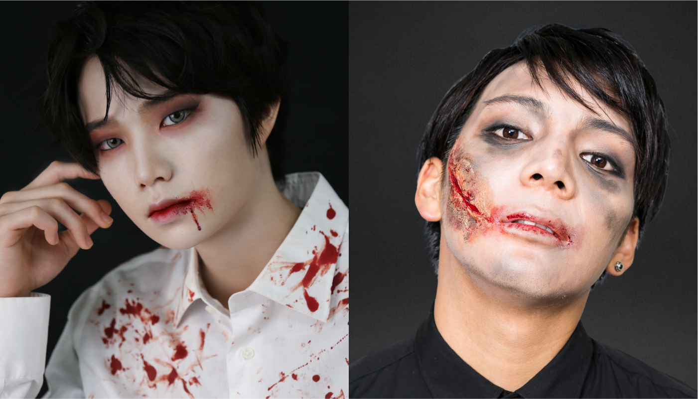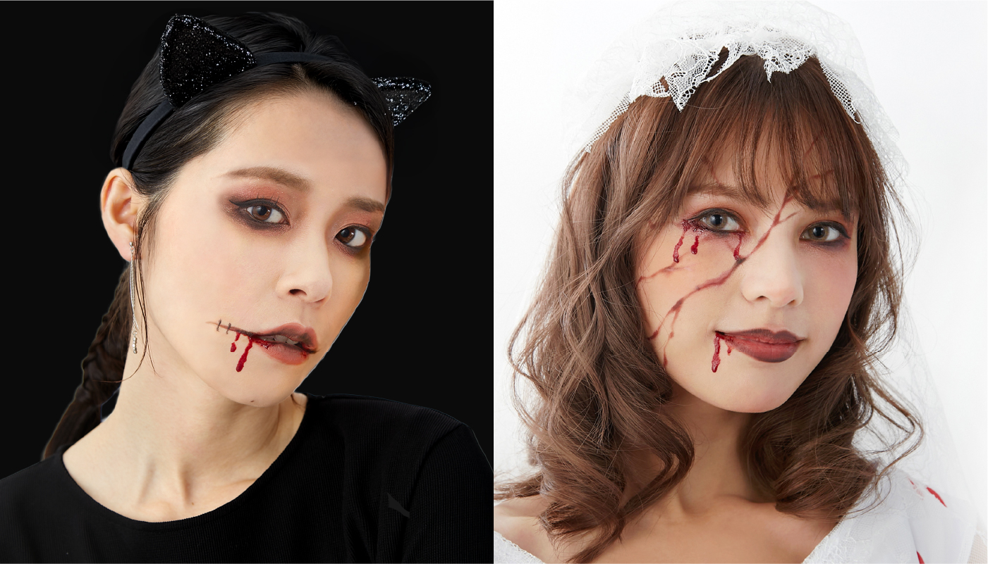 プロが仕上げる傷メイクは、細部までリアルでハイクオリティ。 女性の場合は、いつものメイクにほんの少しプラスするだけで一気にハロウィンらしさが演出できます。