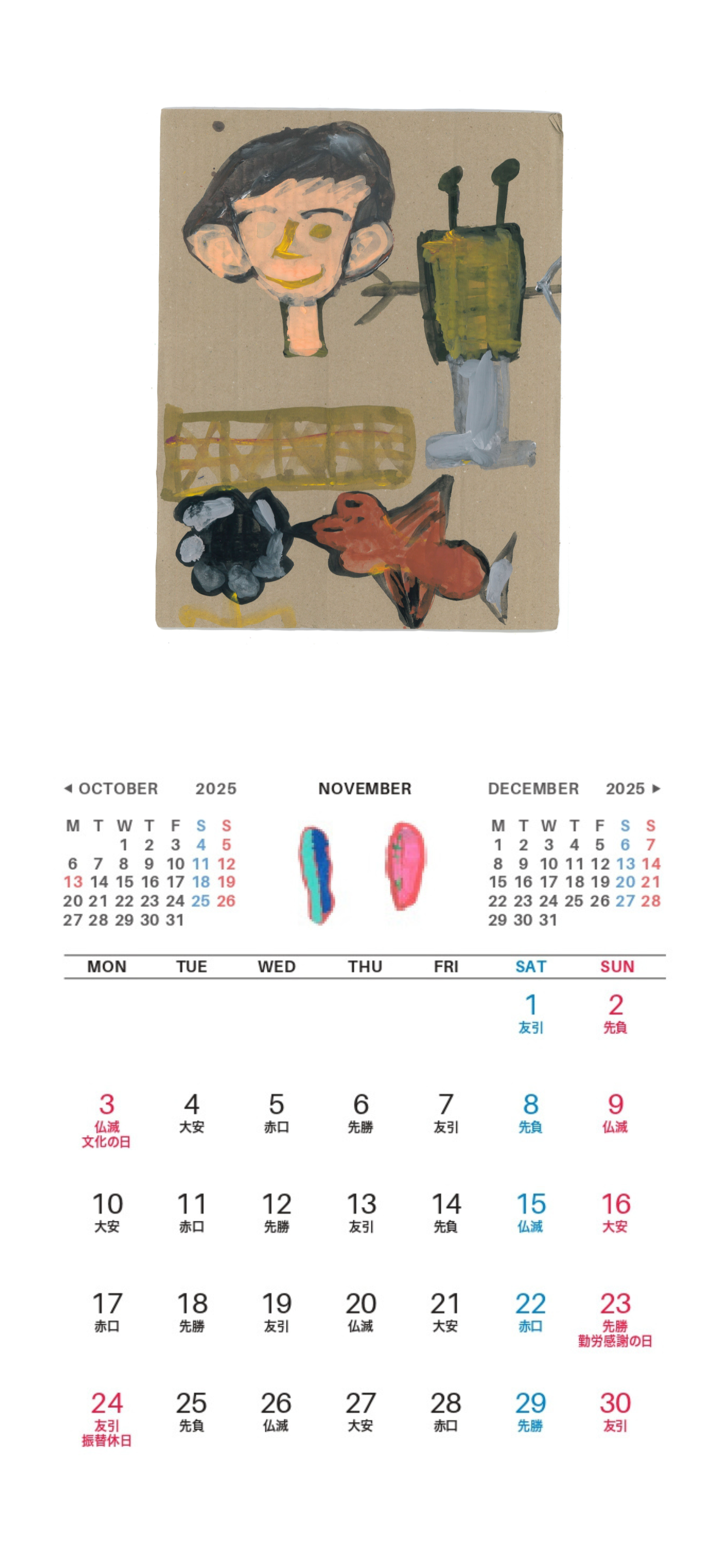 ・2013年より毎年コラボカレンダーを制作しています。カプカプ川和さんにはカレンダーに使用するイラストを描いていただいています。